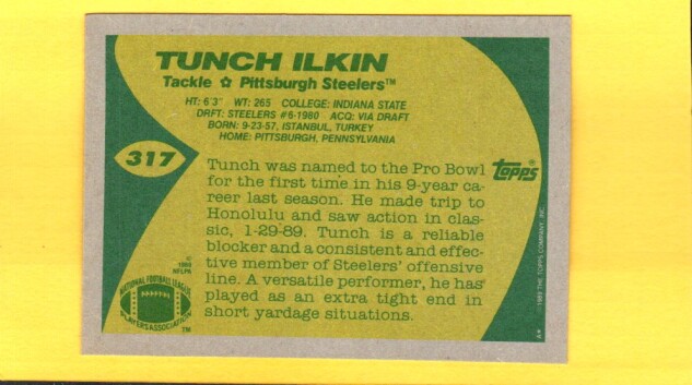 Tunch Ilkin #317 [Rookie] 1989 Topps
