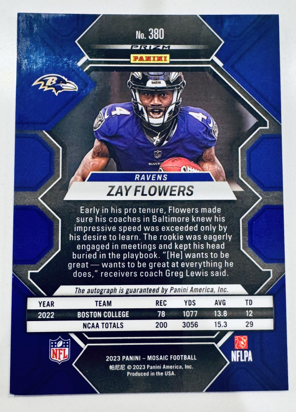 Zay Flowers 2023 Panini Mosaic Rookie Auto