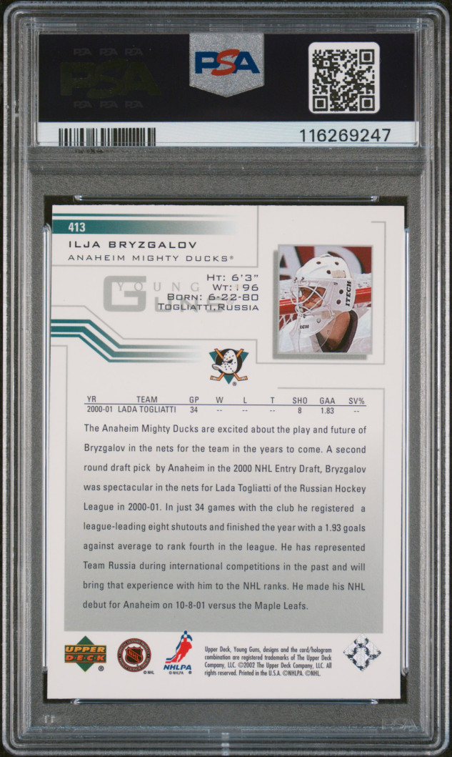 01/02 UPPER DECK RETAIL YOUNG GUNS #413 ILJA BRYZGALOV RC PSA 10 - POP 3