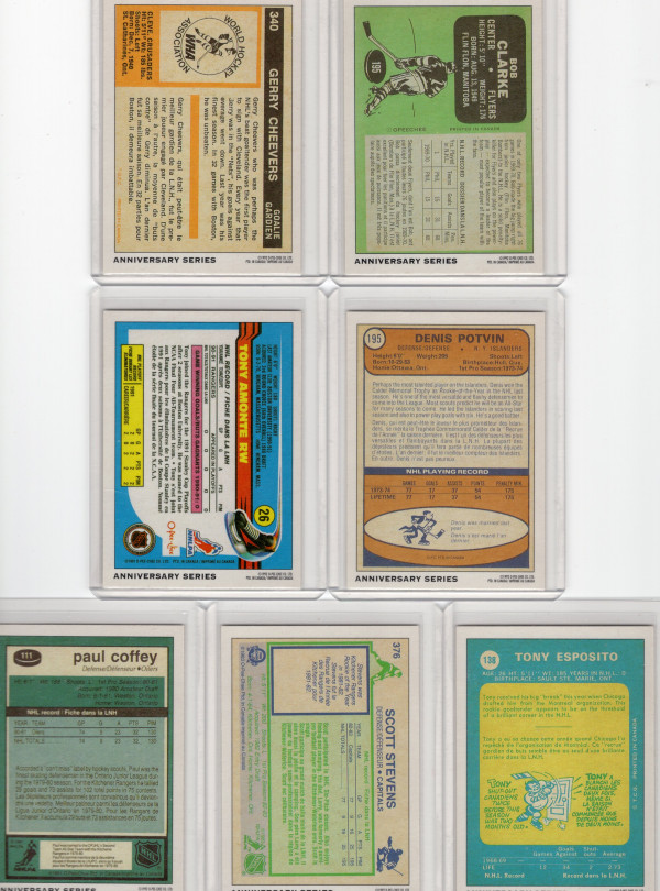 1992 O-PEE-CHEE ANIVERSARY SERIES 7 CARD LOT --OPEN TO TRADES--