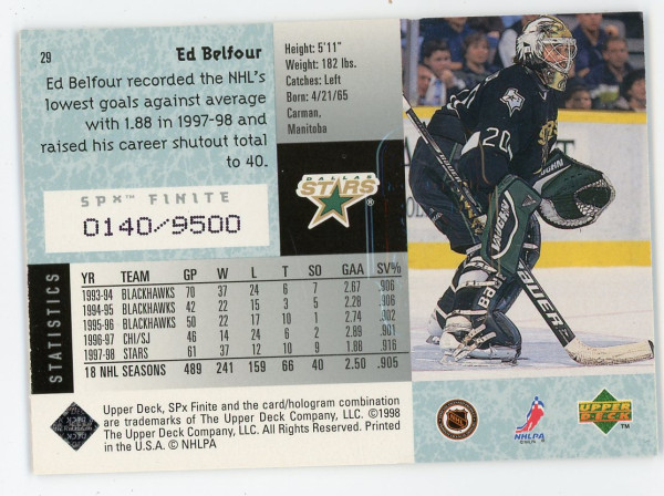 1998-99 SPx Finite #29 Ed Belfour /9500
