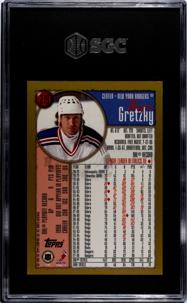 You are purchasing a 1998-99 Topps Wayne Gretzky #219 SGC 9. You will receive the exact item in the photographs. Thank you for looking.
