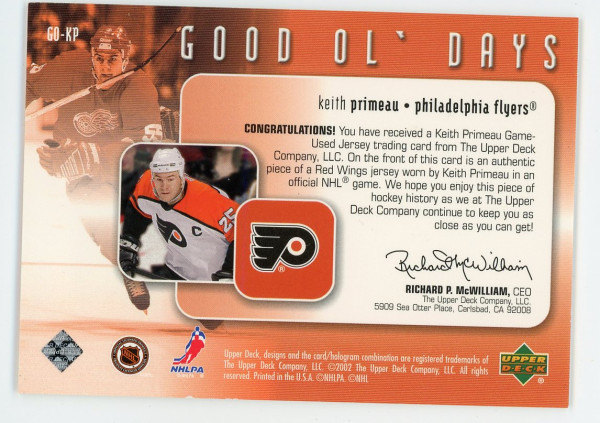 2002-03 Upper Deck Keith Primeau Good Ol' Days Jersey #GO-KP