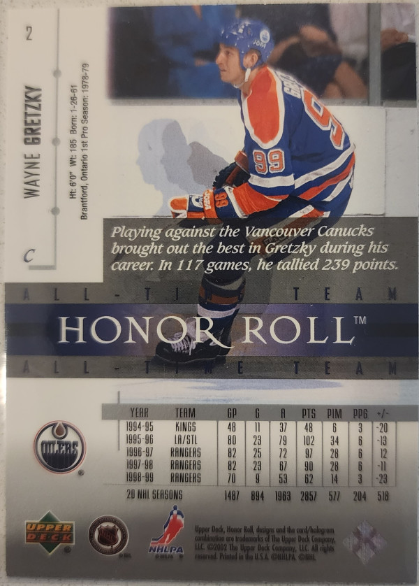 2002 Upper Deck Wayne Gretzky Honor Roll