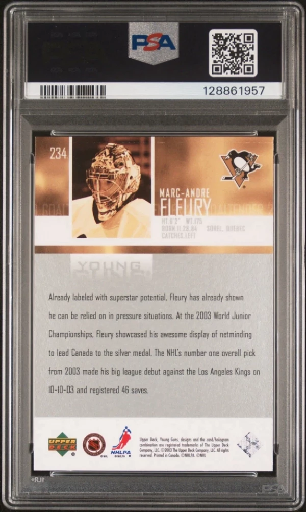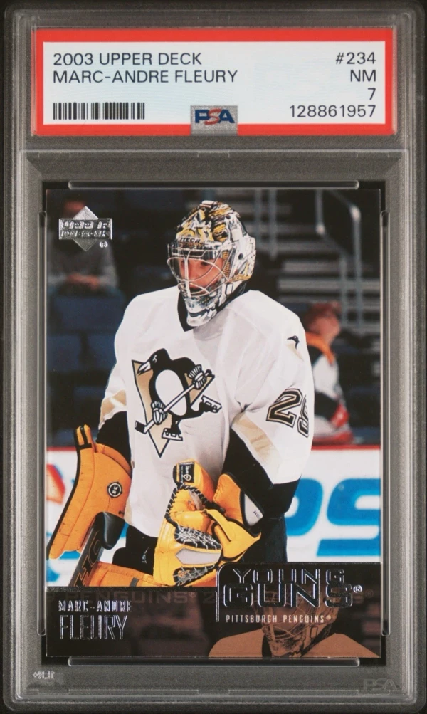 2003-04 Upper Deck Young Guns Rookie Marc Andre Fleury PSA 7