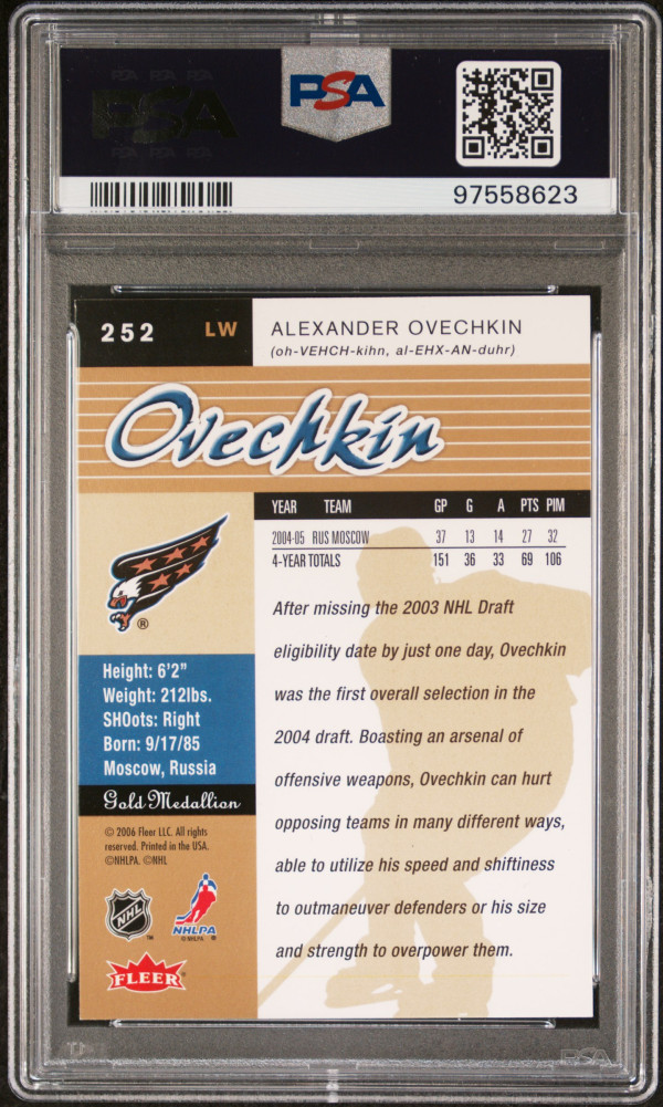 You are purchasing a 2005 Ultra Alexander Ovechkin #252 Gold Medallion PSA 8. You will receive the exact item in the photographs. Thank you for looking.