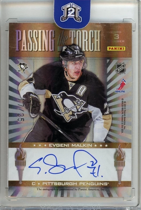 2011-12 Panini Elite Mario Lemieux Evgeni Malkin Passing the Torch Auto /25