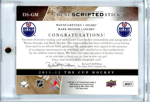 2011-12 Upper Deck The Cup Scripted Sticks Mark Messier Wayne Gretzky /15
