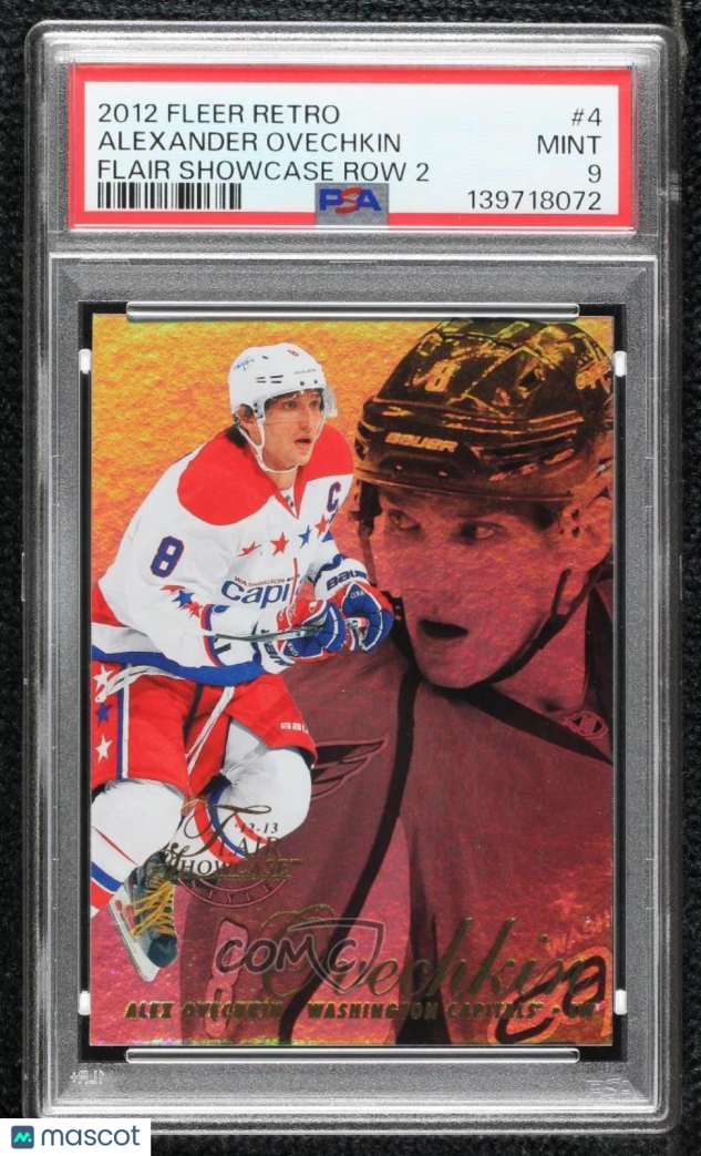 You are purchasing a 2012-13 Fleer Retro Alex Ovechkin #4 Flair Showcase Row 2 Insert PSA 9. You will receive the exact item in the photographs. Thank you for looking.