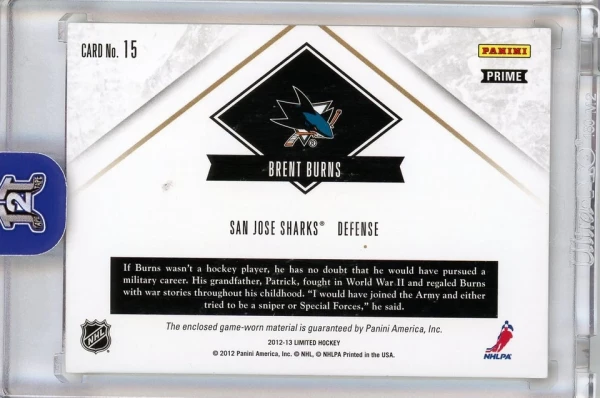 2012-13 Panini Limited Brent Burns Manufacturers Mark 1/1