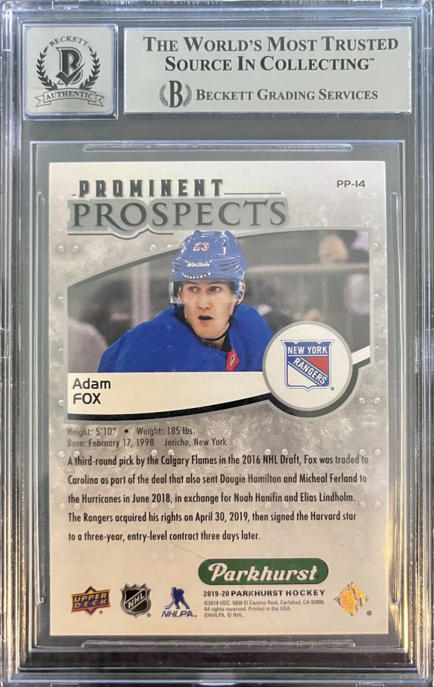 2014–15 Upper Deck Parkhurst Adam Fox Rookie Autograph BGS 10
