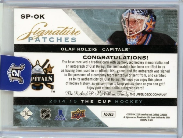 2014-15 Upper Deck The Cup Olaf Kolzig Signature Patches Auto Patch /99
