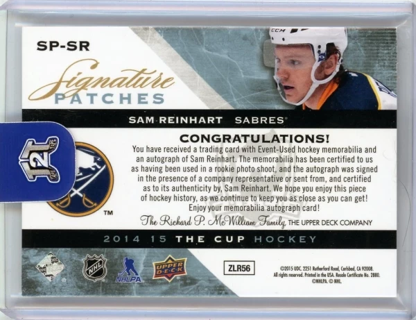 2014-15 Upper Deck The Cup Sam Reinhart Signature Patches Auto Patch /99 Rookie