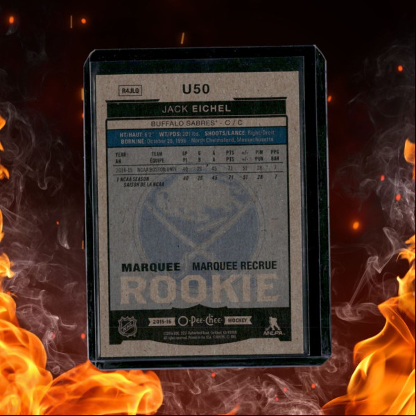 You are purchasing a 2015 O-Pee-Chee Jack Eichel Marquee #R4JLQ Rookie. You will receive the exact item in the photographs. Thank you for looking.