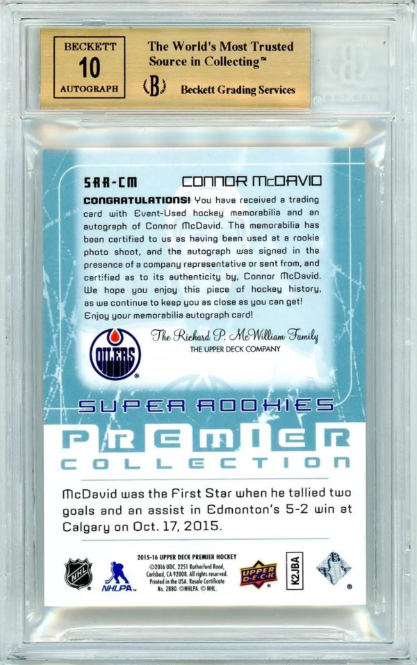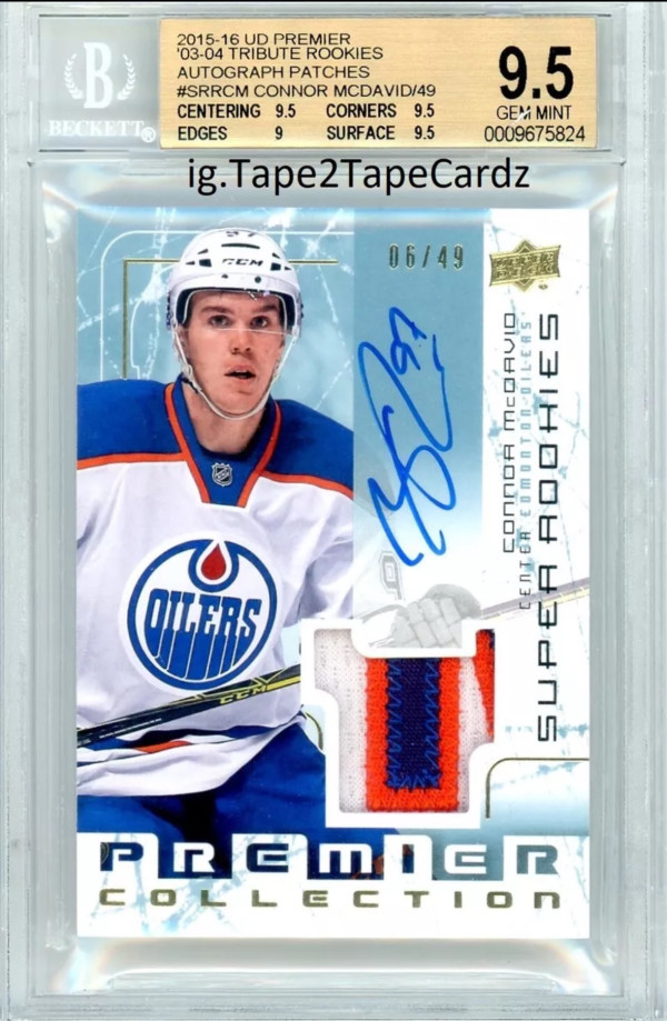 2015-16 Upper Deck Premier Super Rookie Patch Auto /49 BGS 9.5 Connor Mcdavid