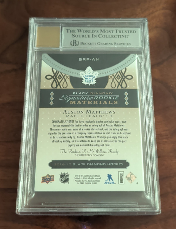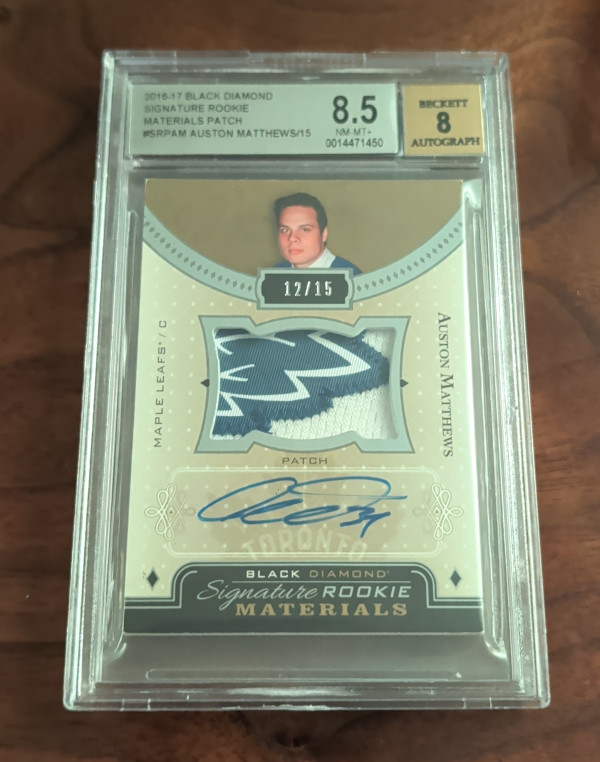 2016-17 Black Diamond Austin Matthews Signature Rookie Materials/15 BGS 8.5 Auto 8 Premium Patch