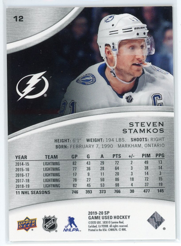 2019-20 SP Game Used #12 Steven Stamkos Rainbow /275