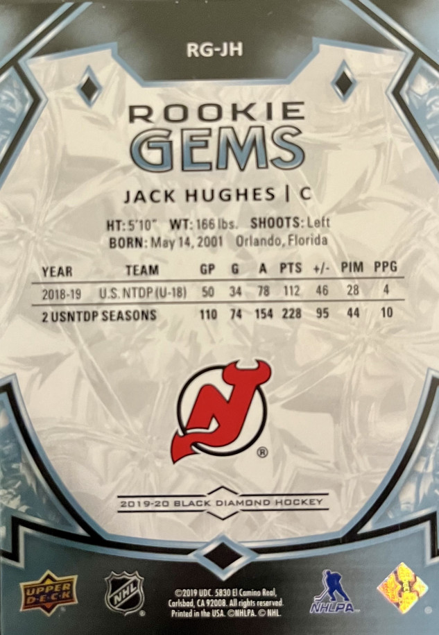 2019–20 Upper Deck Black Diamond Jack Hughes Rookie Gems /99