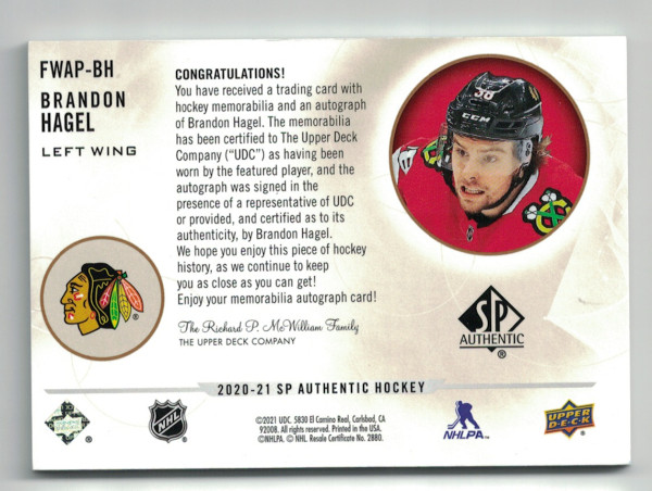 2020-21 UD SP Authentic Future Watch Brandon Hagel 093/100 Rookie