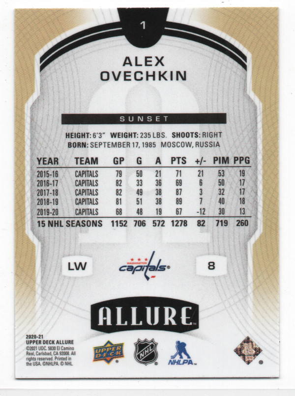 2020-21 Upper Deck Allure ePack Sunset Parallel #1 Alex Ovechkin