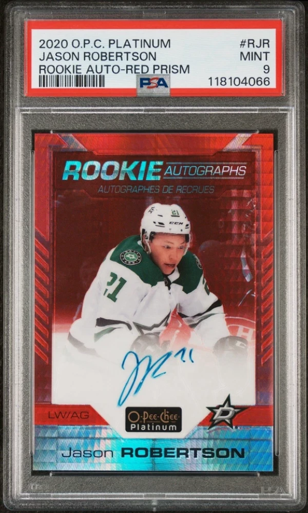 2020-21 Upper Deck OPC Platinum Red Prism Auto /50 Jason Robertson PSA 9