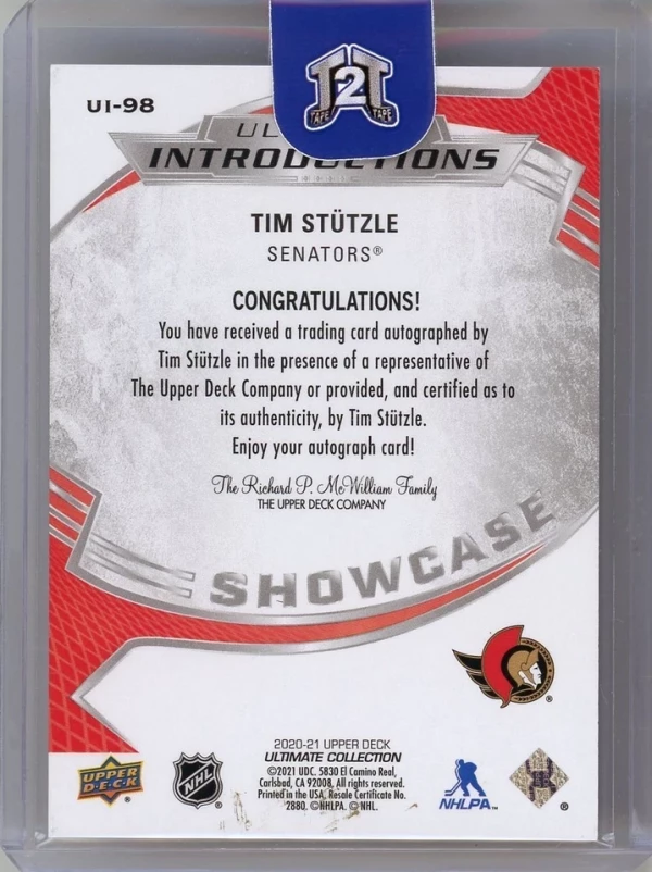 2020-21 Upper Deck Ultimate Tim Stützle Introductions Gold Auto /15
