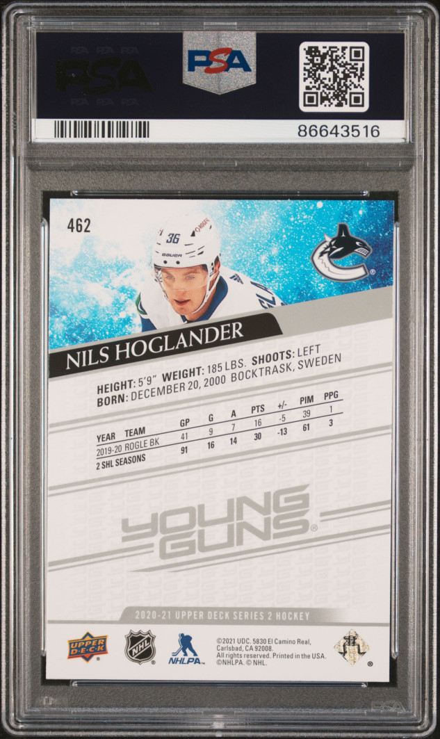 2020 Upper Deck Young Guns Nils Hoglander RC #462 PSA 10 GEM MINT