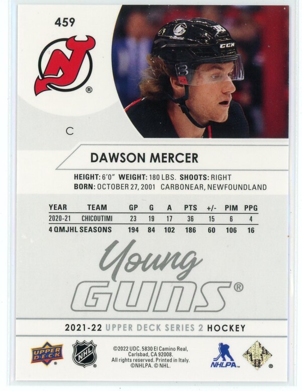 2021-22 Upper Deck #459 Dawson Mercer Young Guns