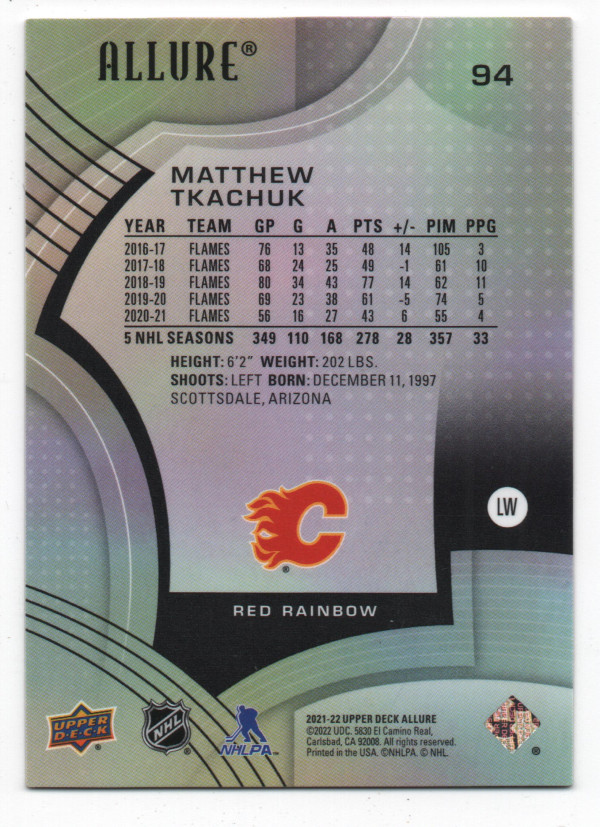 2021-22 Upper Deck Allure Red Rainbow Parallel #94 Matthew Tkachuk