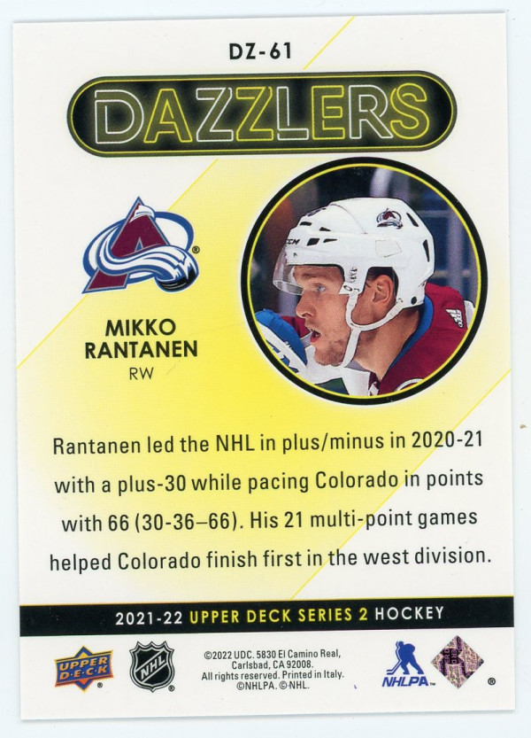 2021-22 Upper Deck #DZ-DZ-61 Mikko Rantanen Dazzlers Purple