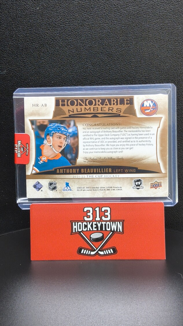 You are purchasing a 2021-22 Upper Deck The Cup Honorable Numbers Anthony Beauvillier #HR-AB Patch Memorabilia. You will receive the exact item in the photographs. Thank you for looking.