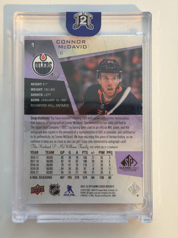 2021 SP Game Used Connor McDavid Auto 4 Color Patch /5