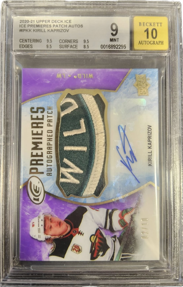 20/21 UPPER DECK ICE ICE PREMIERES PATCH AUTOGRAPH #IP-KK KIRILL KAPRIZOV RC (02/10) - BGS 9/AUTO 10