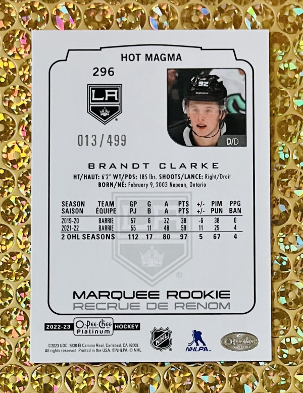 2022-23 O-Pee-Chee Platinum #296 Brandt Clark RC Hot Magma /499