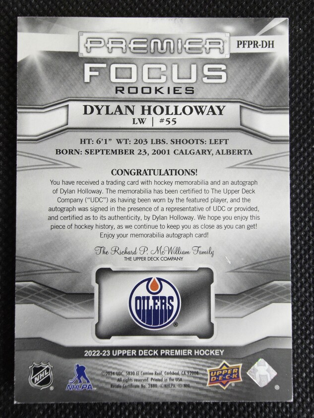 2022-23 UD Premier Rookies Auto Patch Dylan Holloway Gold /49