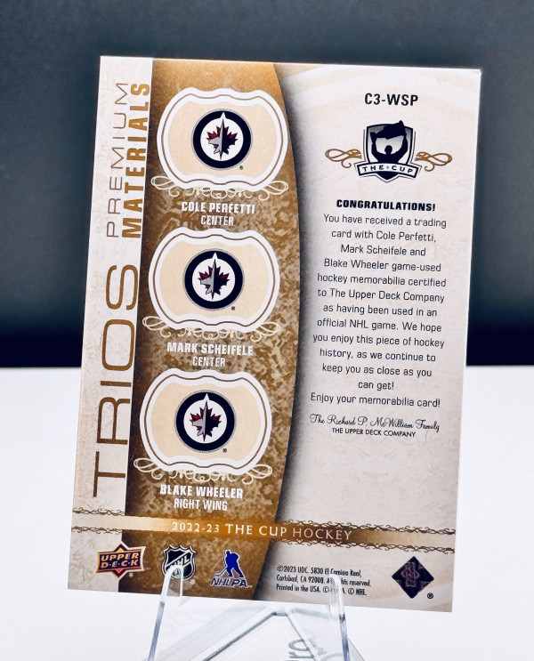 2022-23 UD The Cup Trios Premium Materials Perfetti | Scheifele | Wheeler /10