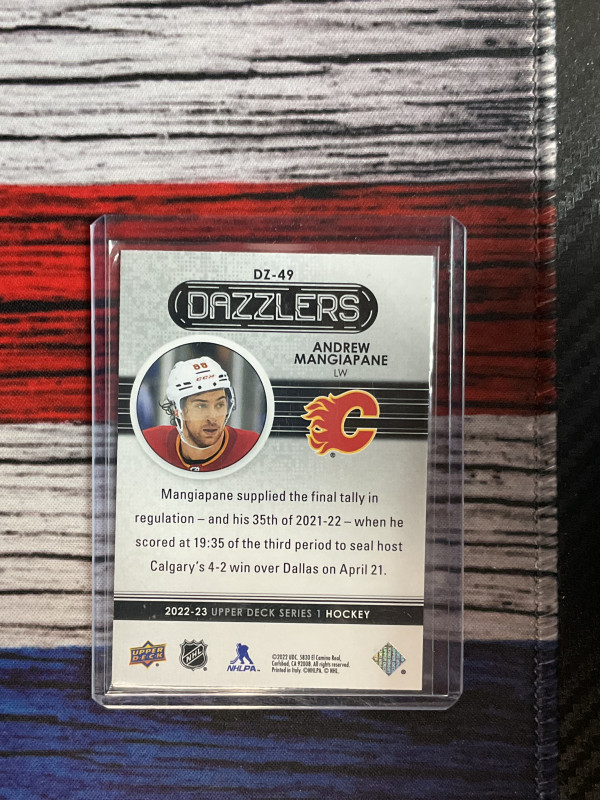You are purchasing a 2022-23 Upper Deck Series 1 Dazzlers Andrew Mangiapane #DZ-49 Blue. You will receive the exact item in the photographs. Thank you for looking.