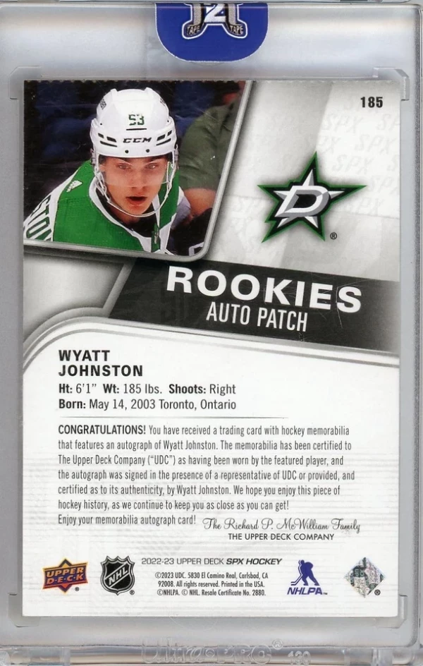 2022-23 Upper Deck SPx Wyatt Johnston Rookie Auto Patch /25