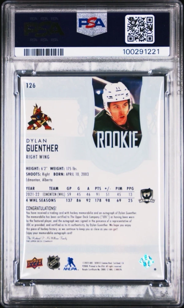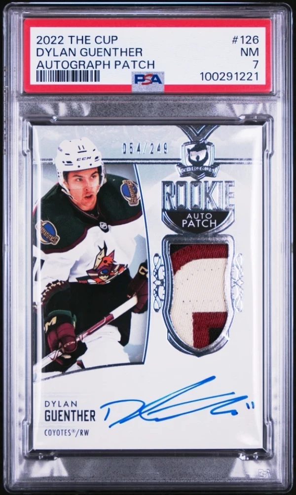 2022-23 Upper deck The Cup Rookie Patch Auto /249 Dylan Guenther PSA 7
