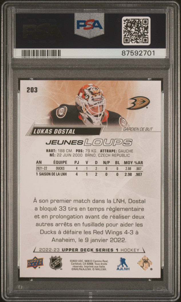 2022 Upper Deck Lukas Dostal Young Guns French PSA 9 Mint