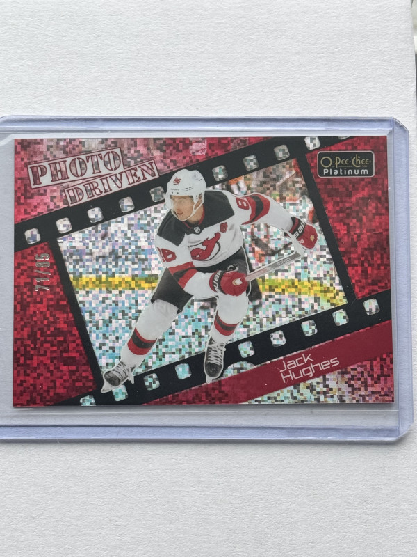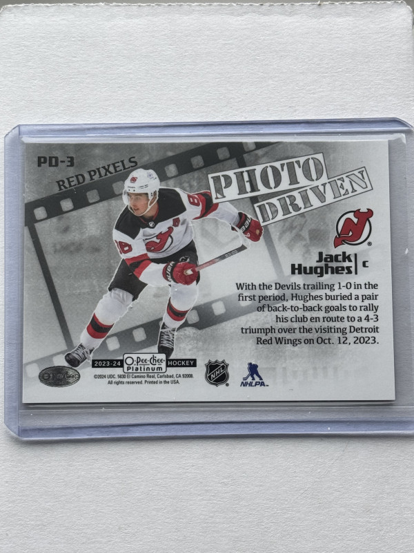 2023-24 O-Pee-Chee Platinum Jack Hughes Photo Driven Red Pixels /85