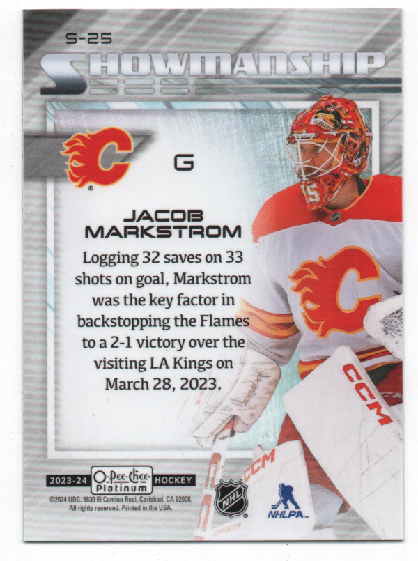 2023-24 O-Pee-Chee Platinum Showmanship #S-25 Jacob Markstrom