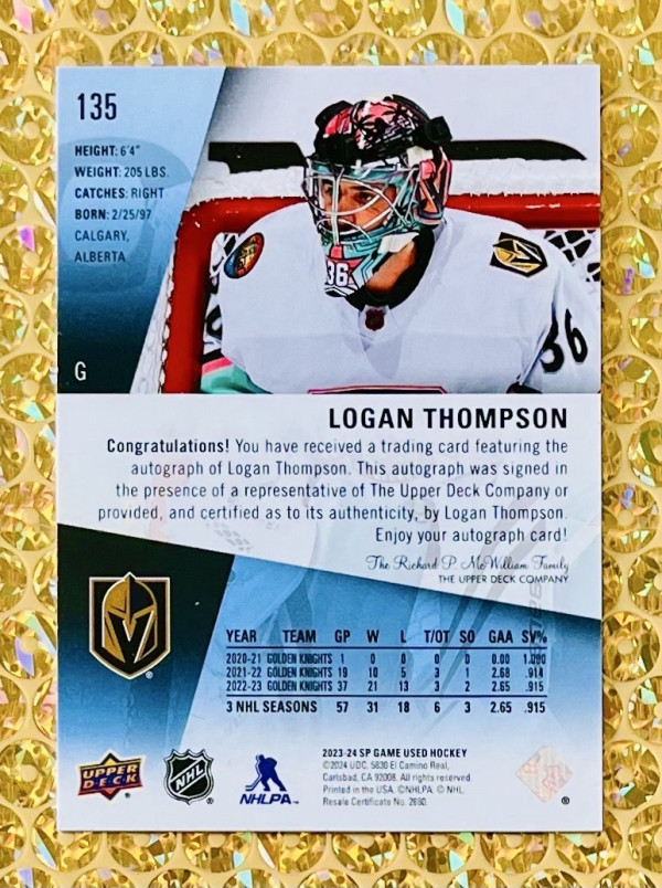2023-24 SP Game Used #135 Logan Thompson All-Star Auto Blue Spectrum