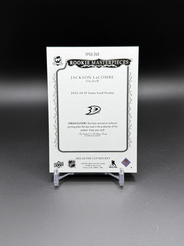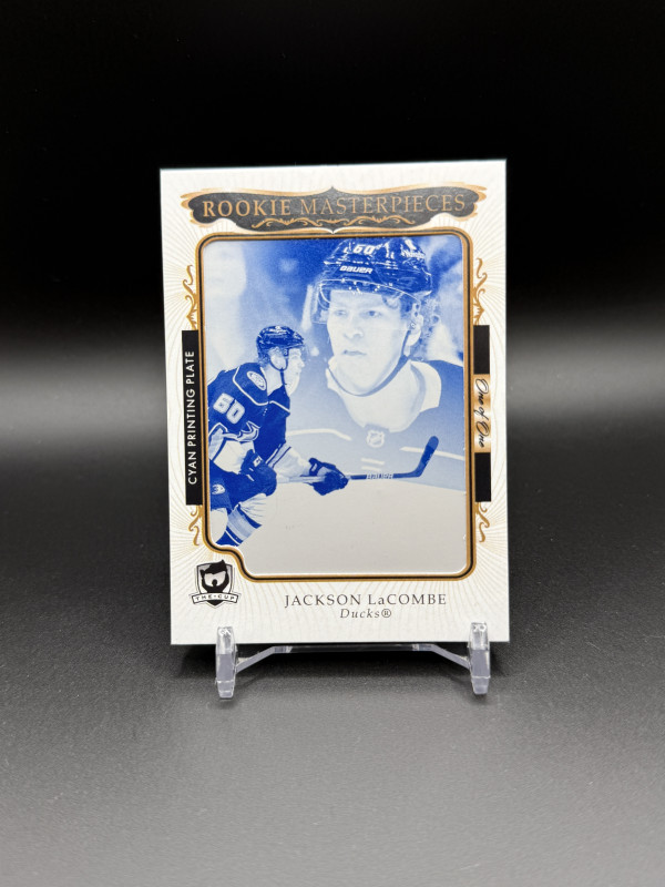 2023-24 The Cup Printing Plates SP Game Used Cyan Jackson LaCombe RC ROOKIE 1/1