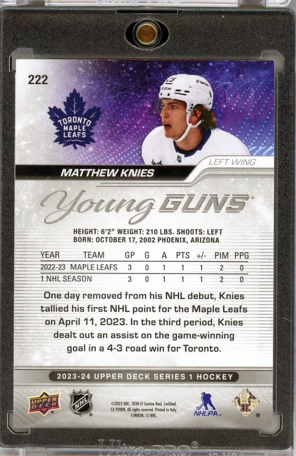 2023-24 Upper Deck Series One Young Guns /10 High Gloss Matthew Knies Rookie