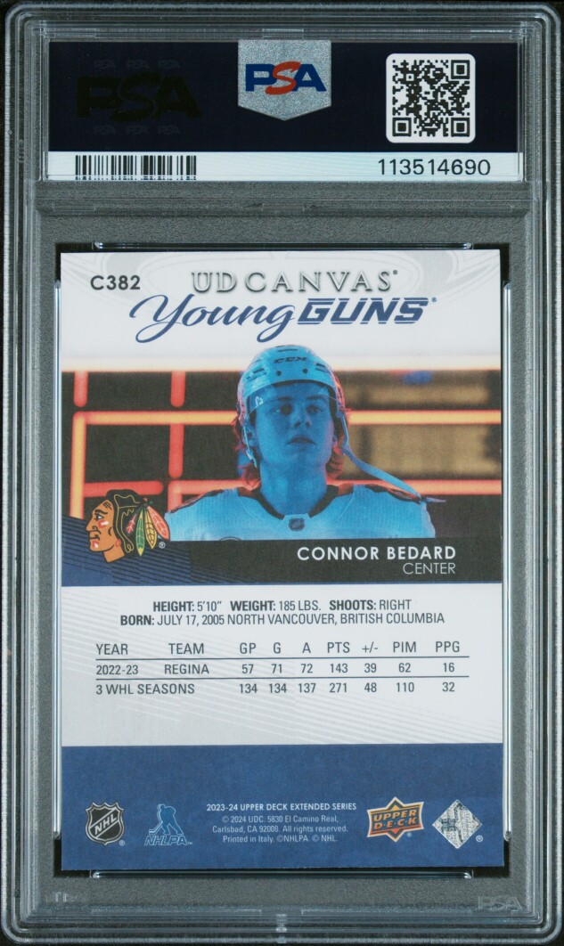 2023 Upper Deck Connor Bedard UD Canvas Young Guns PSA 10