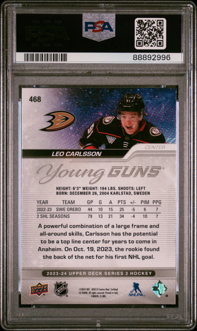 2023 Upper Deck Leo Carlsson Young Guns PSA 10