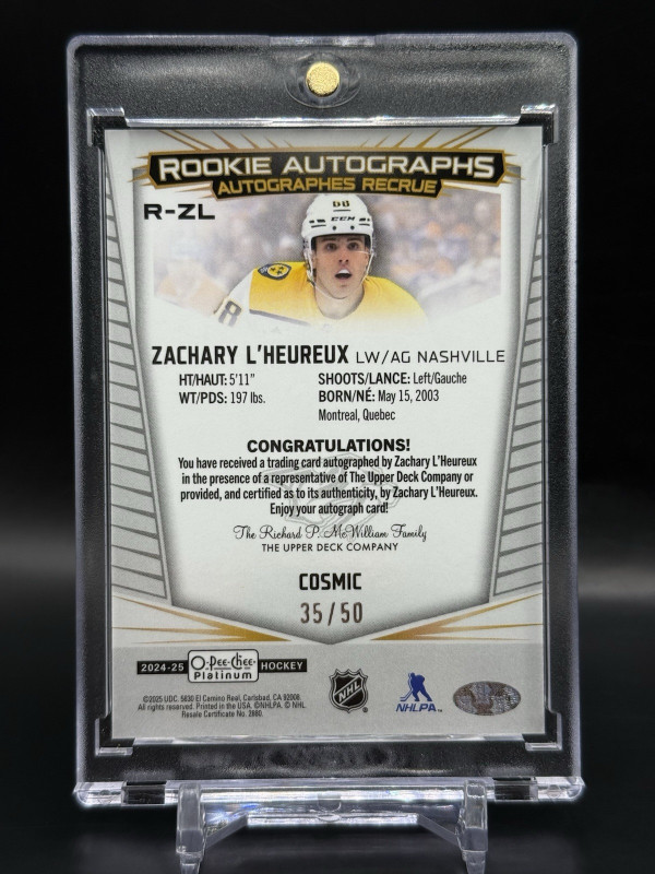 2024-25 O-Pee-Chee Platinum Zachary L'Heureux Cosmic Rookie Auto 35/50 RC OPC