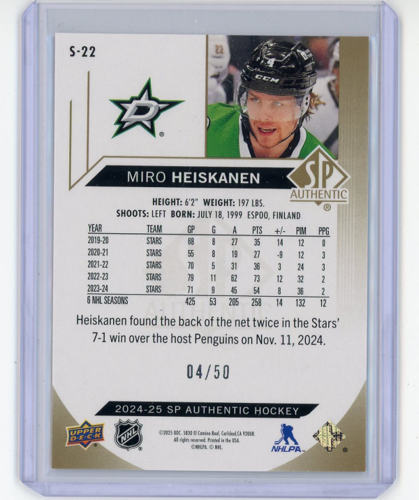 2024-25 SP Authentic Miro Heiskanen Spectrum FX Gold 4/50 #S-22