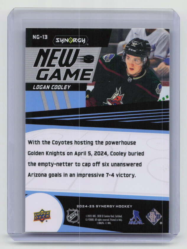 You are purchasing a 2024-25 Synergy Hockey New Game Logan Cooley #NG-13. You will receive the exact item in the photographs. Thank you for looking.
